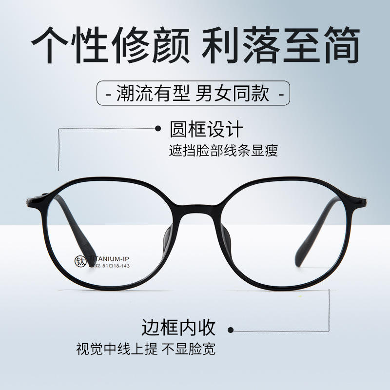 Lunettes de vue à monture ronde de style coréen 6832, unisexe, verres en acrylique de taille moyenne, monture complète