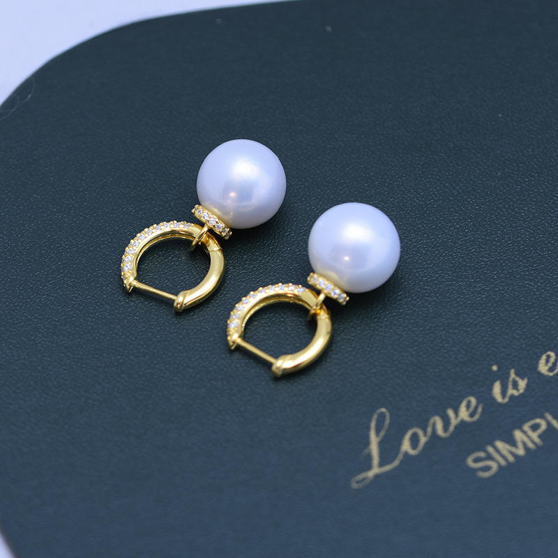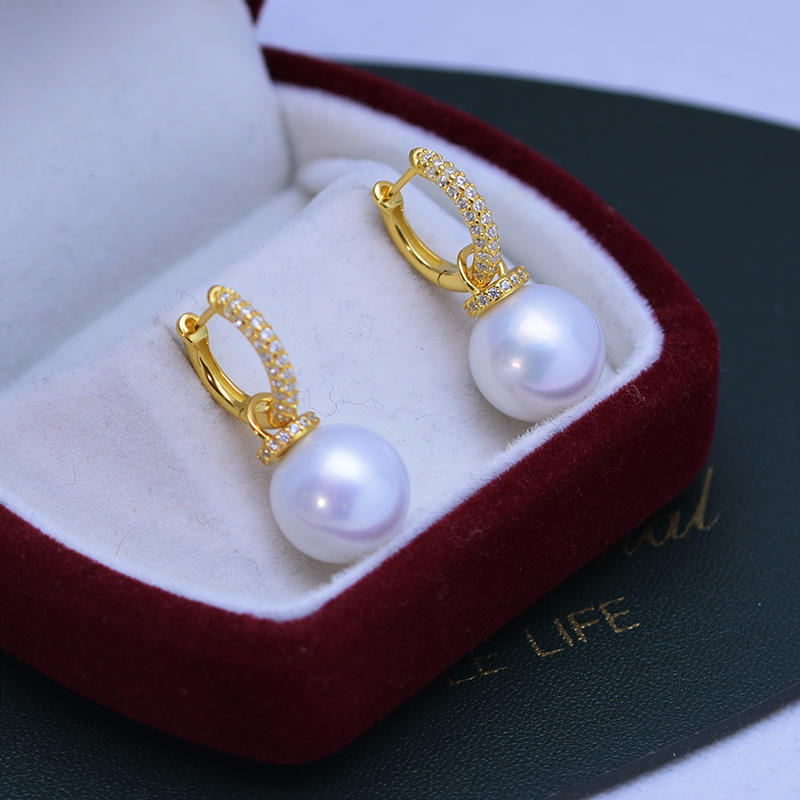 Korean Style S925 Silver Freshwater 11-12mm White Strong Light Delicate Pearl Earrings with Ear Buckle for Women