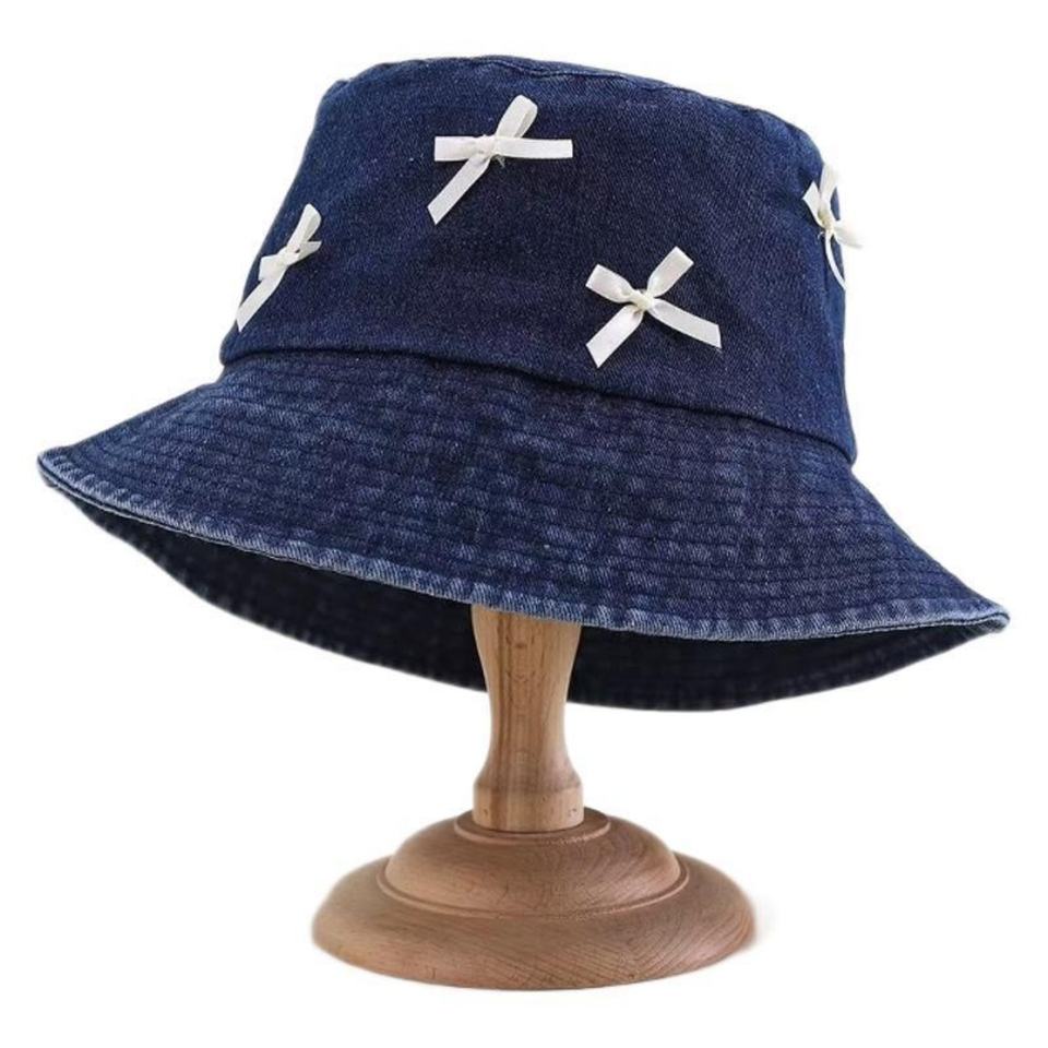 Nouveau Chapeau Bob en Jean Brodé 3D Nœud Papillon Style Coréen INS pour Femme – Protection Solaire Printemps-Été, Doux et Tendance