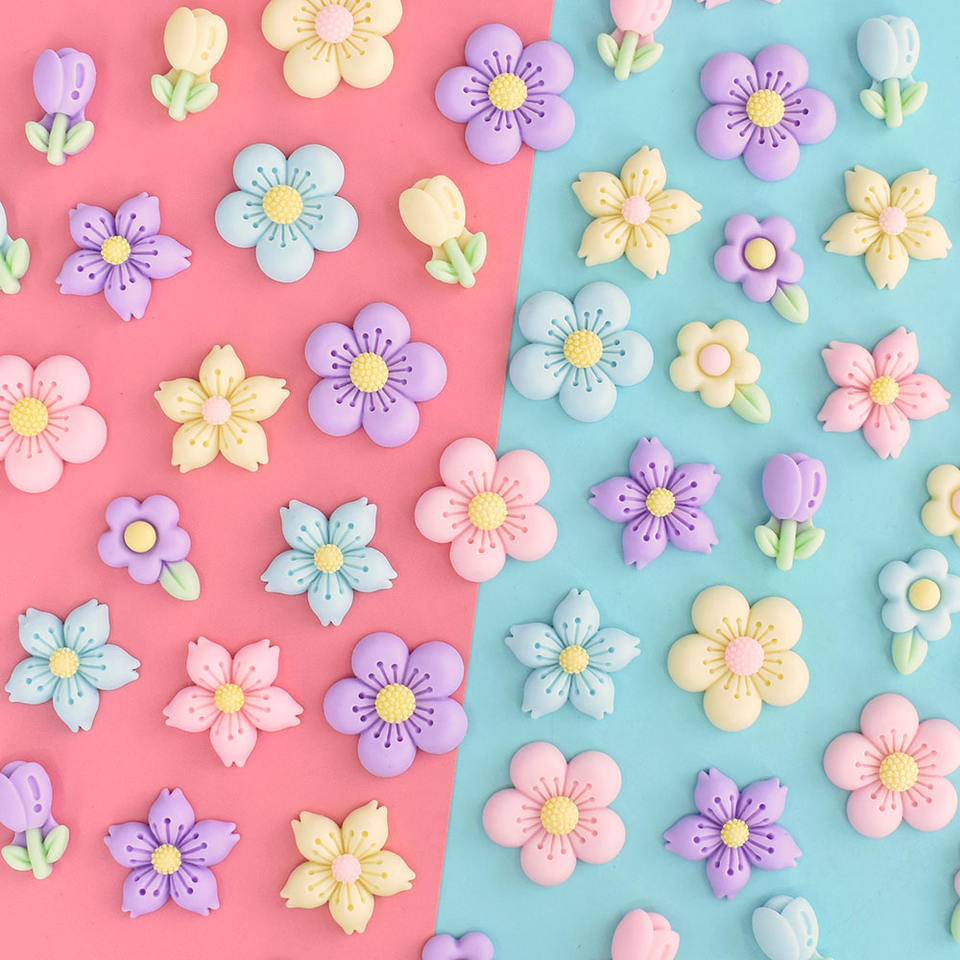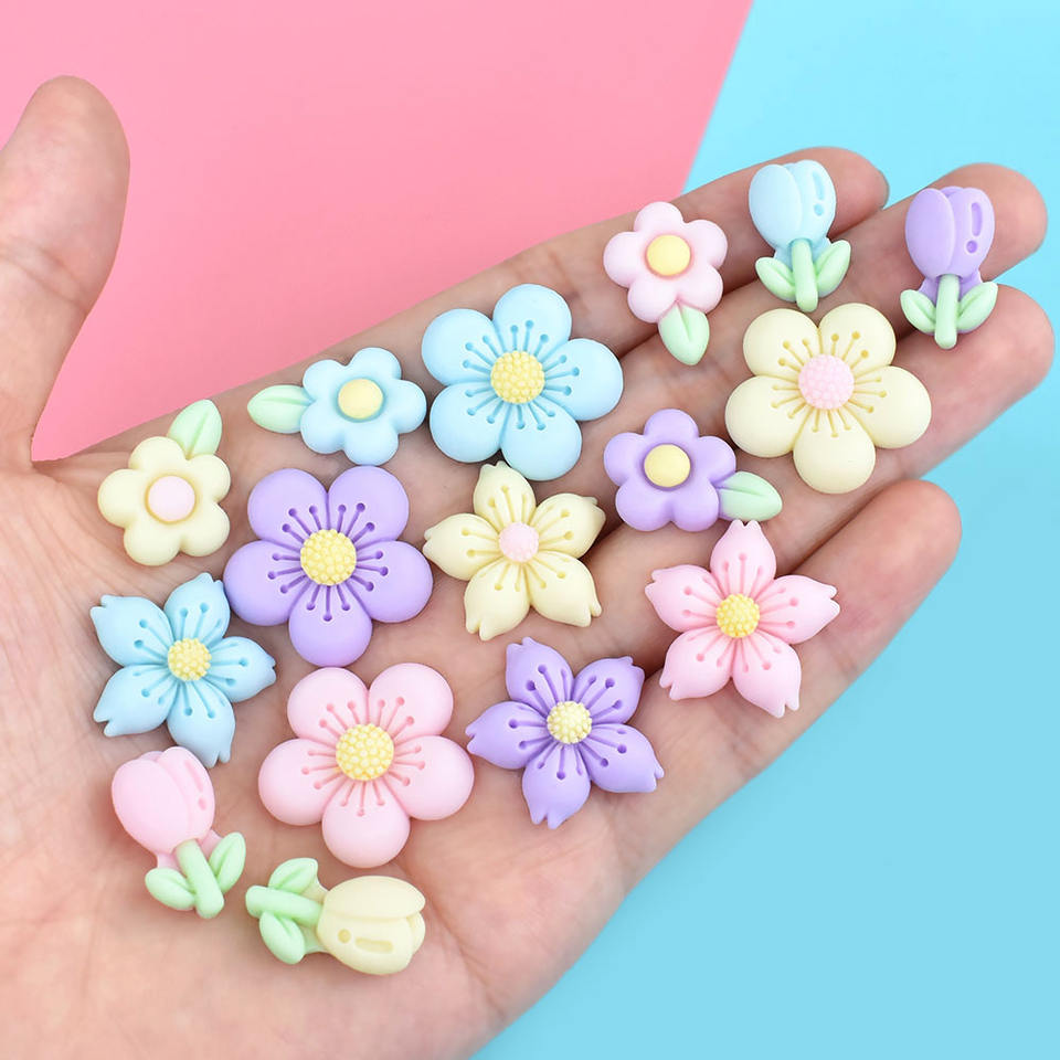 Cabochon en résine coloré style coréen, motif fleur, dos plat, breloque en résine Kawaii pour accessoires capillaires pour enfants