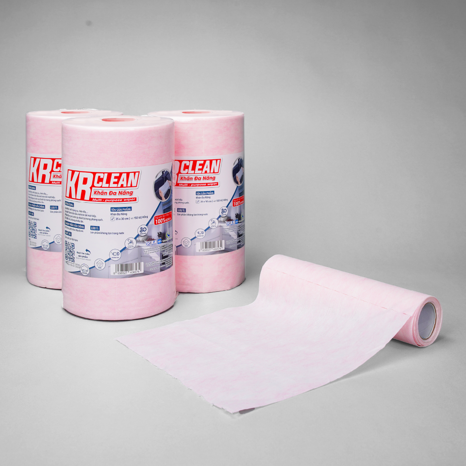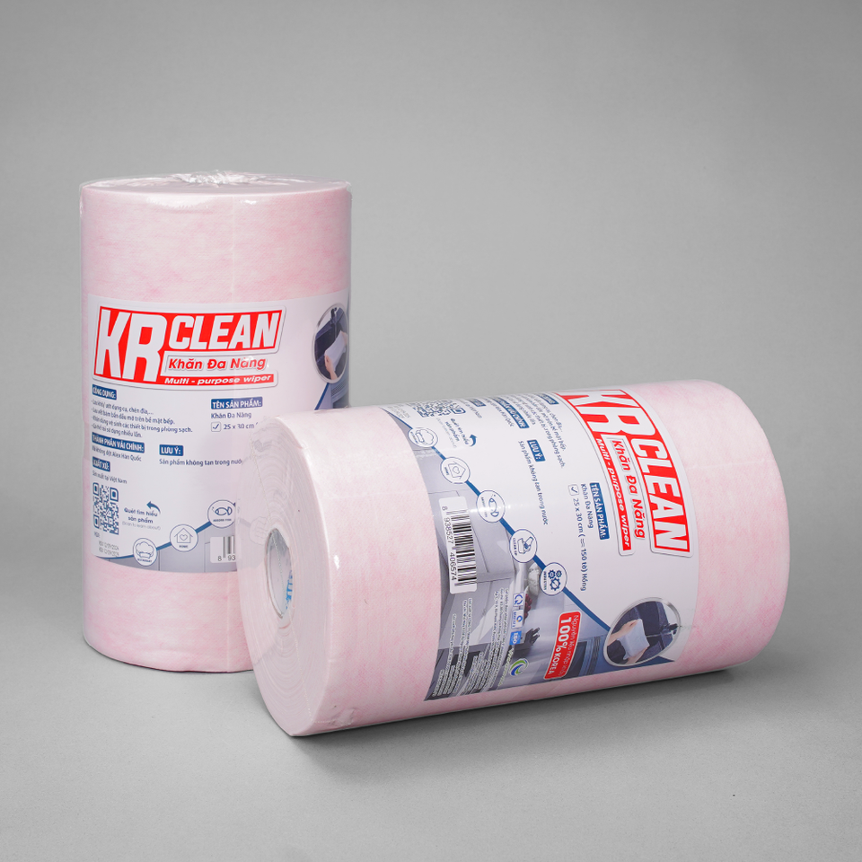KrClean Lingettes de cuisine multi-usages de haute qualité Lingettes absorbantes en rouleau en tissu non tissé Fabriquées au Vietnam Style uni