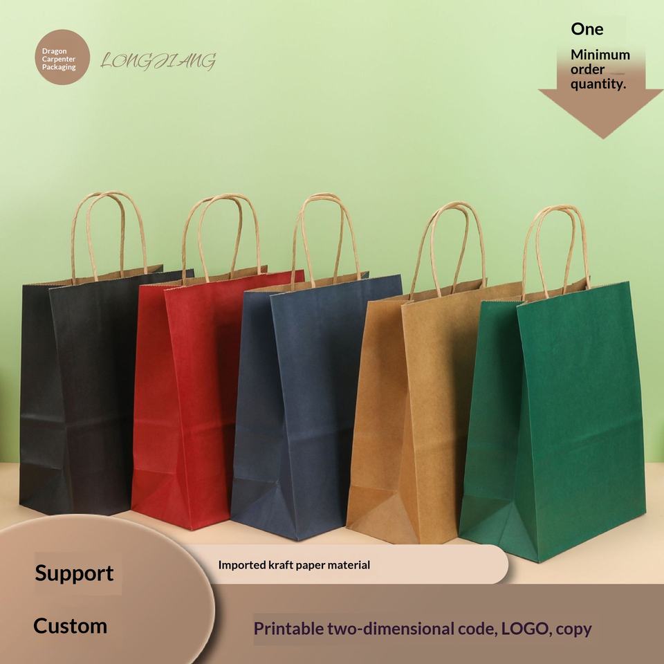 Sac en papier kraft style sac à main, imprimé Noël et Nouvel An, avec logo, épaissi, pour vêtements, thé au lait, pain, pâtisserie, café à emporter