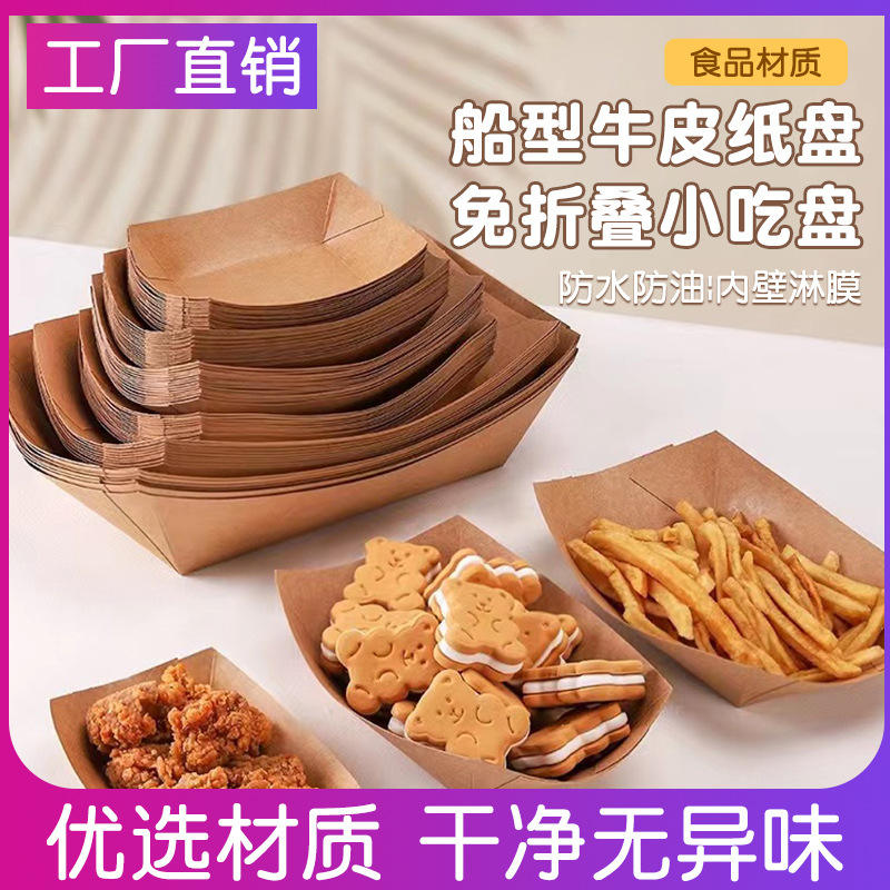 Boîtes en papier kraft jetables pour frites, poulet frit, plats à emporter, biodégradables, papier de base 250g, lamination 15g