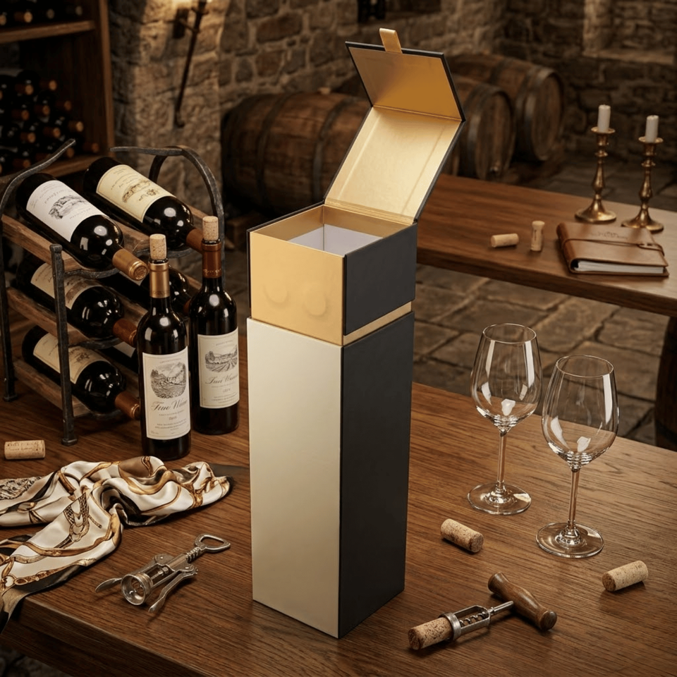 Diviseur de boîte en papier kraft écologique | Emballage double bouteille marron avec laminage mat, revêtement UV, gaufrage et éponge recyclée
