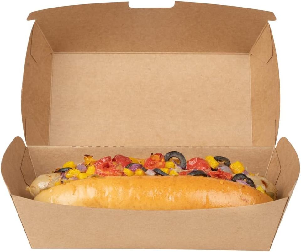 Récipients pour hot-dogs en papier kraft Boîte d'emballage recyclable et sulfurisée pour hot-dogs