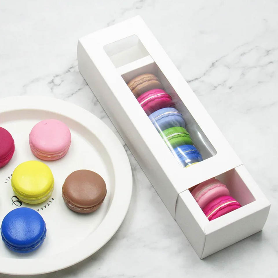 Boîte d'emballage en papier kraft avec fenêtre transparente Tiroir pliant Boîtes d'emballage cadeau pour biscuits et bonbons Boîte de présentation pour bijoux