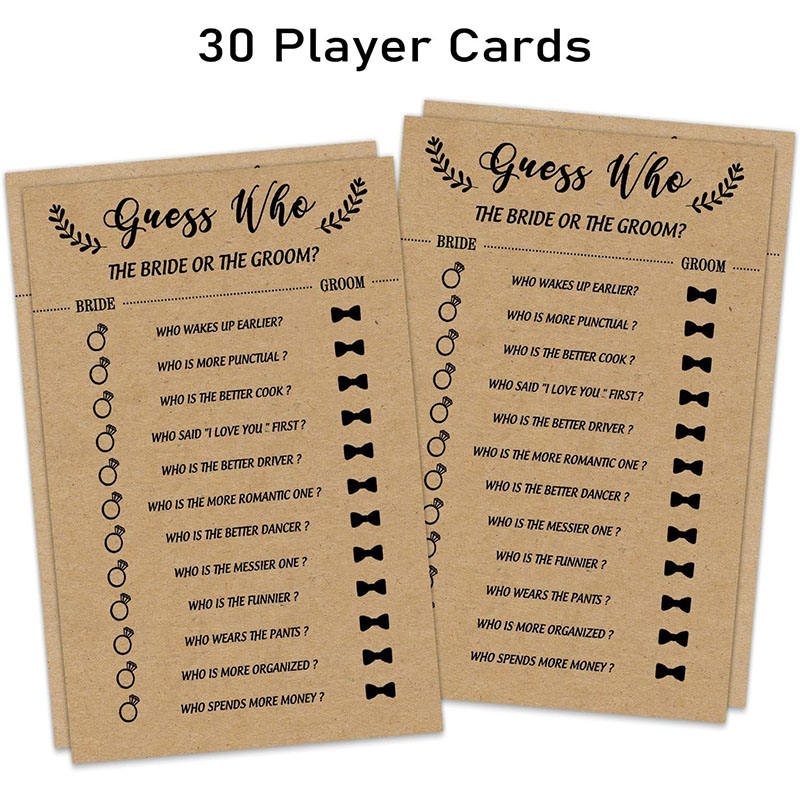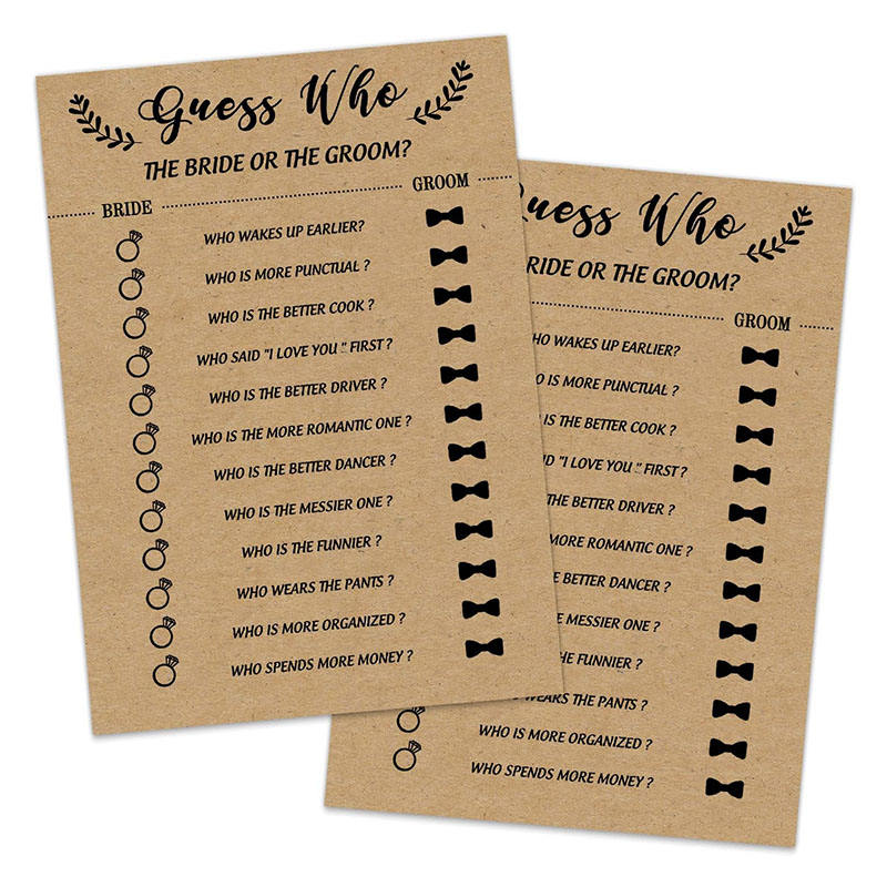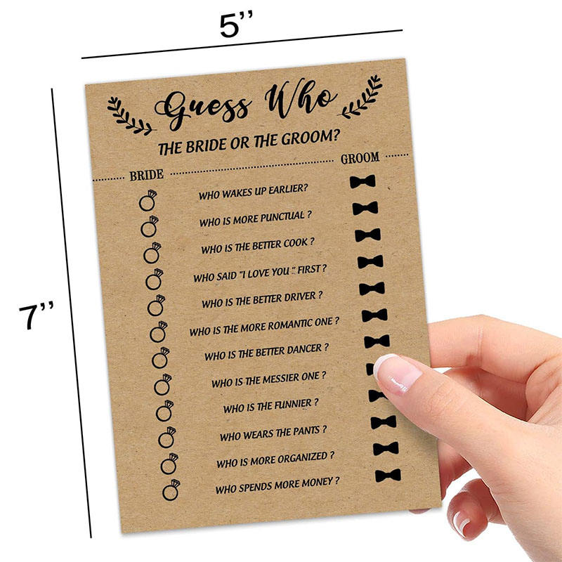 Jeu de cartes d'activités amusantes en papier kraft pour les invités qui connaissent les mariés et la mariée, jeu de fête de mariage, jeu de fête de mariage