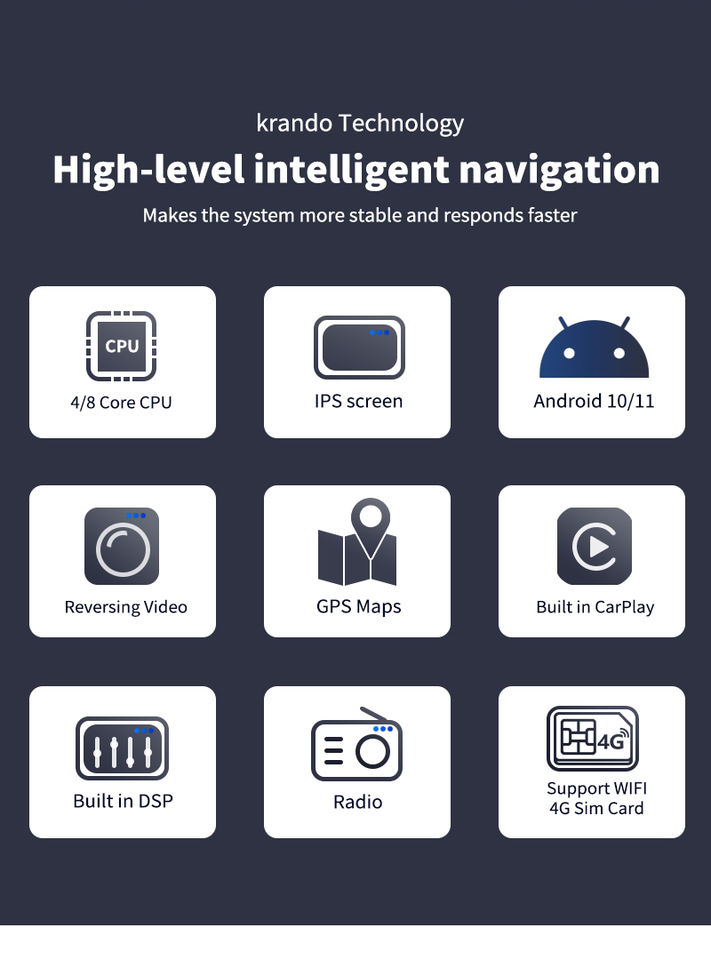 GPS, Stéréo, DSP, CarPlay, Lien de miroir, Android auto, Écran partagé, Gestionnaire de fichiers, Volant de voiture de ContrôleFonction