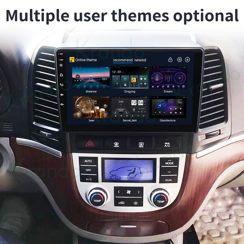 Autoradio Krando 9 pouces pour Hyundai Santa Fe 2006 - 2012, lecteur DVD de voiture, autoradio Android, CarPlay sans fil, 4G, stéréo de voiture 128 Go