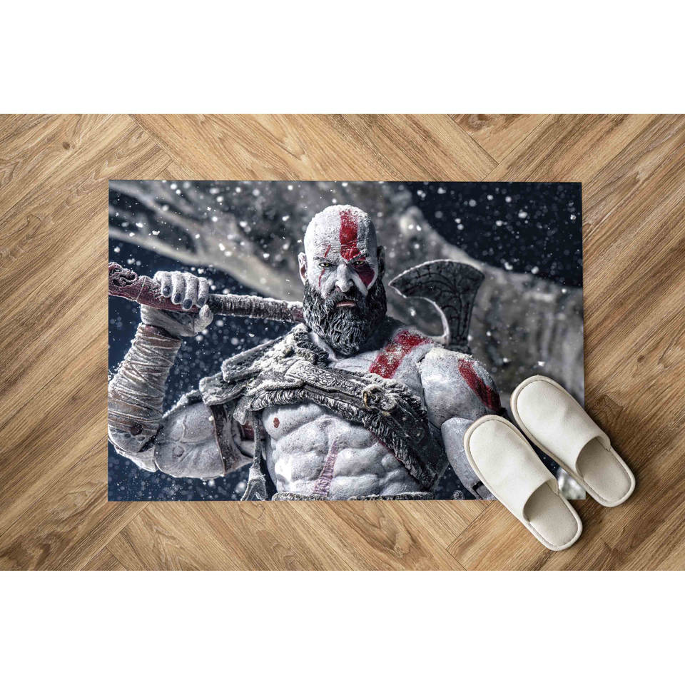 Tapis Kratos, tapis imprimé moderne, motif God Of War, gris, avec poils doux