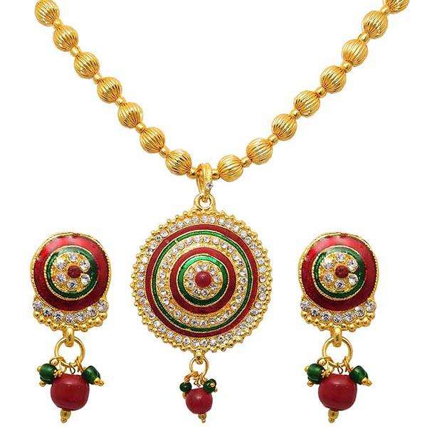Kriaa 1104526 Fine Jewelry Set Marron Vert Pierre Autrichienne Meenakari Collier Plaqué Or Perle Diamant Boucles D'oreilles pour Cadeau Alliage