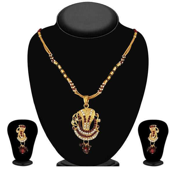 Kriaa 1200211 Ensemble de bijoux fins Pendentif en pierre autrichienne marron et plaqué or