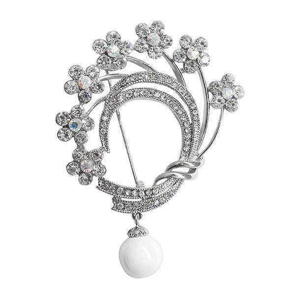 Kriaa 1500231 motif floral broche de fête de mariage blanc autrichien Zircon strass Saree broche or argent plaqué broches fines
