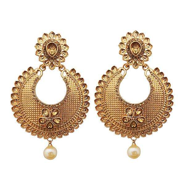 Kriaa Brown Kundan Stone Gold Plated Dangler Earrings Fine Cuff 1310552