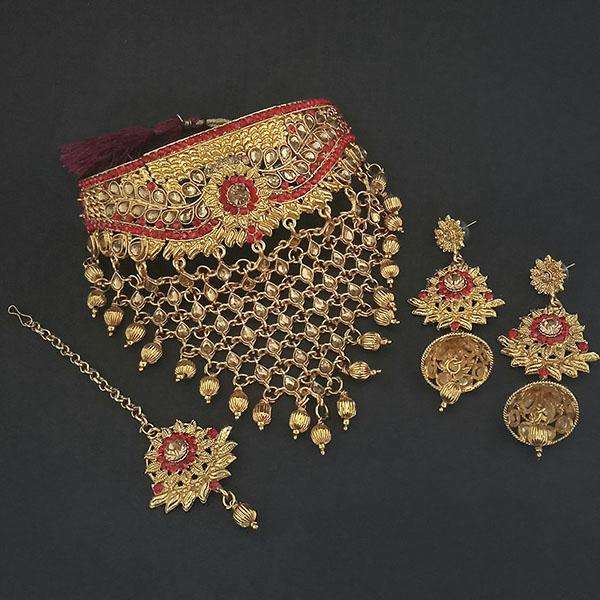 Ensemble de bijoux fins Kriaa Collier ras du cou en pierre autrichienne rouge avec Maang Tikka 1113660
