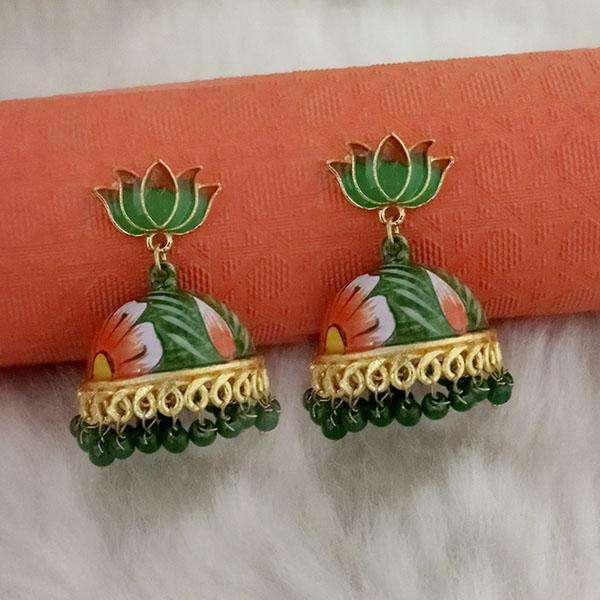 Kriaa Green Meenakari Lotus Jhumka Earrings 1314428H Fashion Accessory