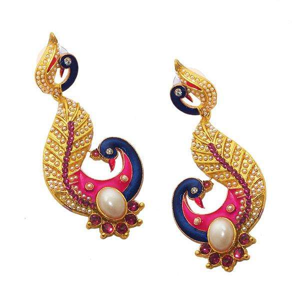 Kriaa Peacock Earrings Blue Meenakari with Gold Plating Pearl Jewelry