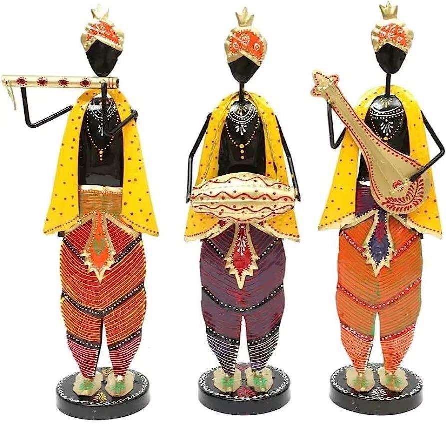 Figurines en métal faites à la main de Krishna Musicians, lot de trois, décoration d'intérieur, cadeau d'entreprise, vente en gros, exportation en vrac, Inde