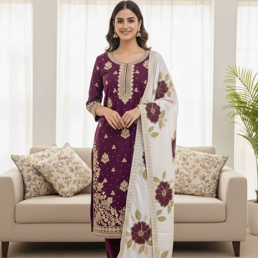 Top Fabric:Pure GMY SILK With Heavy Embroidery Coding-3mm Sequence Work