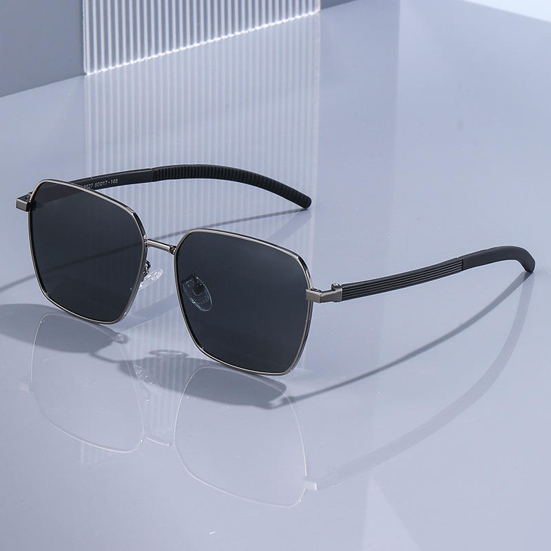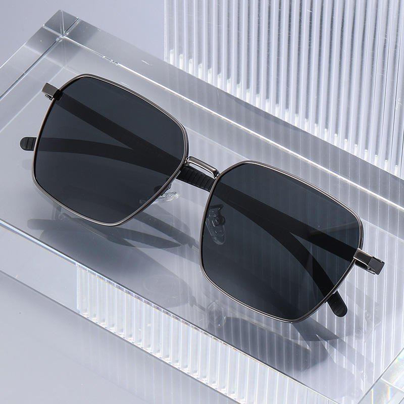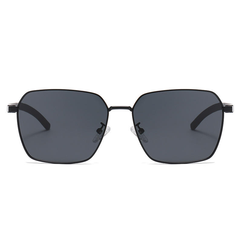 Ks-3827 Lunettes de soleil polarisées carrées pour hommes, monture noire, accent doré, protection UV400 pour la conduite et l'extérieur