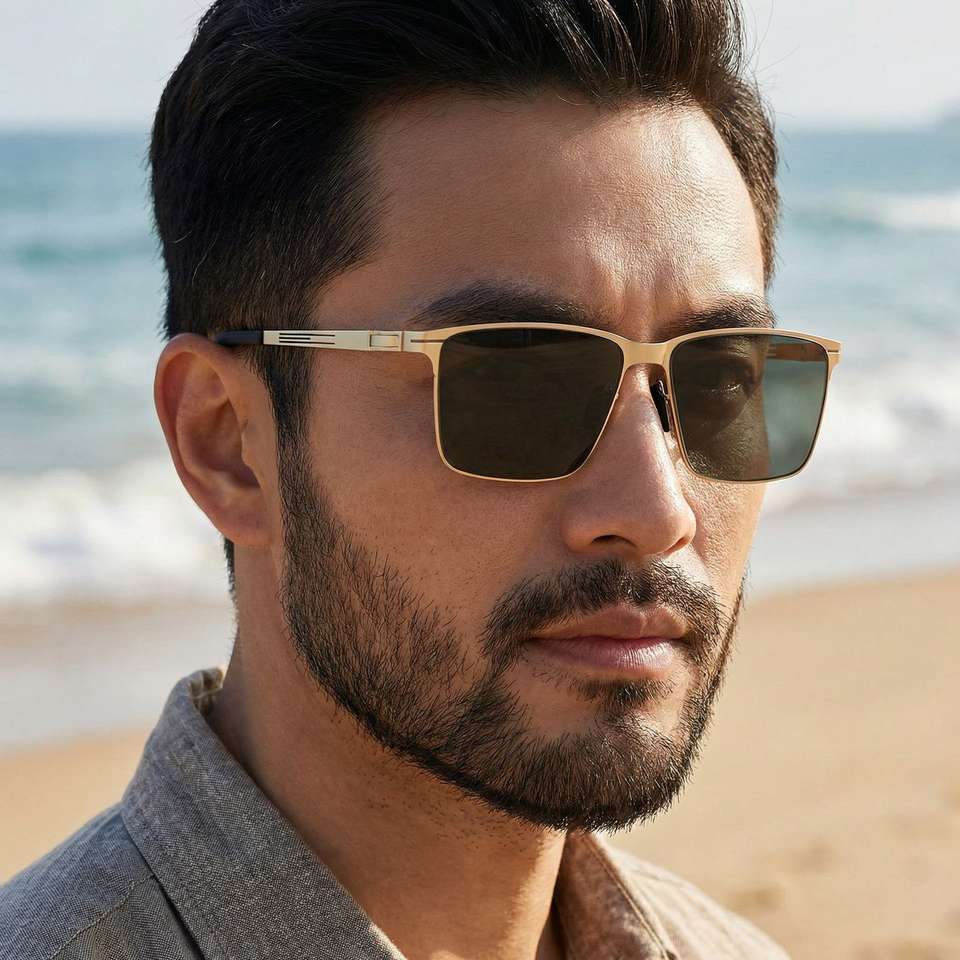 Lunettes de soleil carrées pour hommes Ks-3985, monture en plastique et métal, verres polarisés en nylon UV400, noires, pour la protection solaire en extérieur