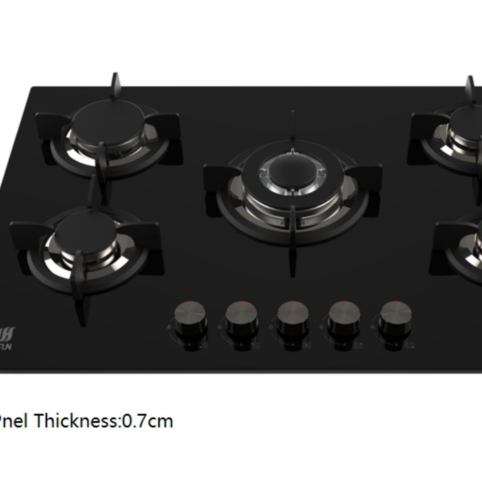 Cuisinière à gaz en verre Ksun à 5 brûleurs haute efficacité avec fonction étanche, usage domestique, garantie 1 an - Économie d'énergie et durable