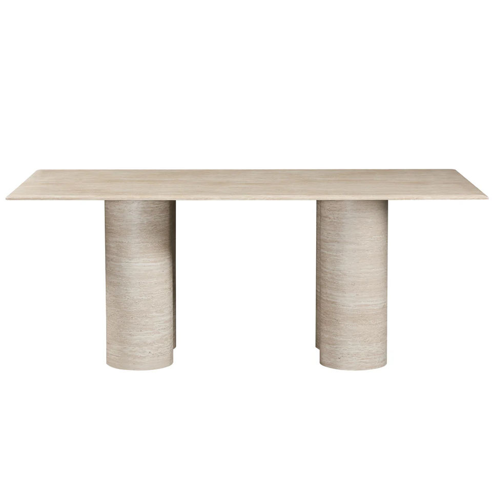 Table à manger carrée en travertin Kumusi avec quatre pieds cylindriques en marbre naturel