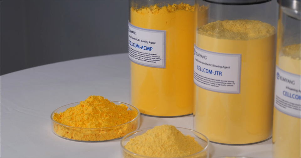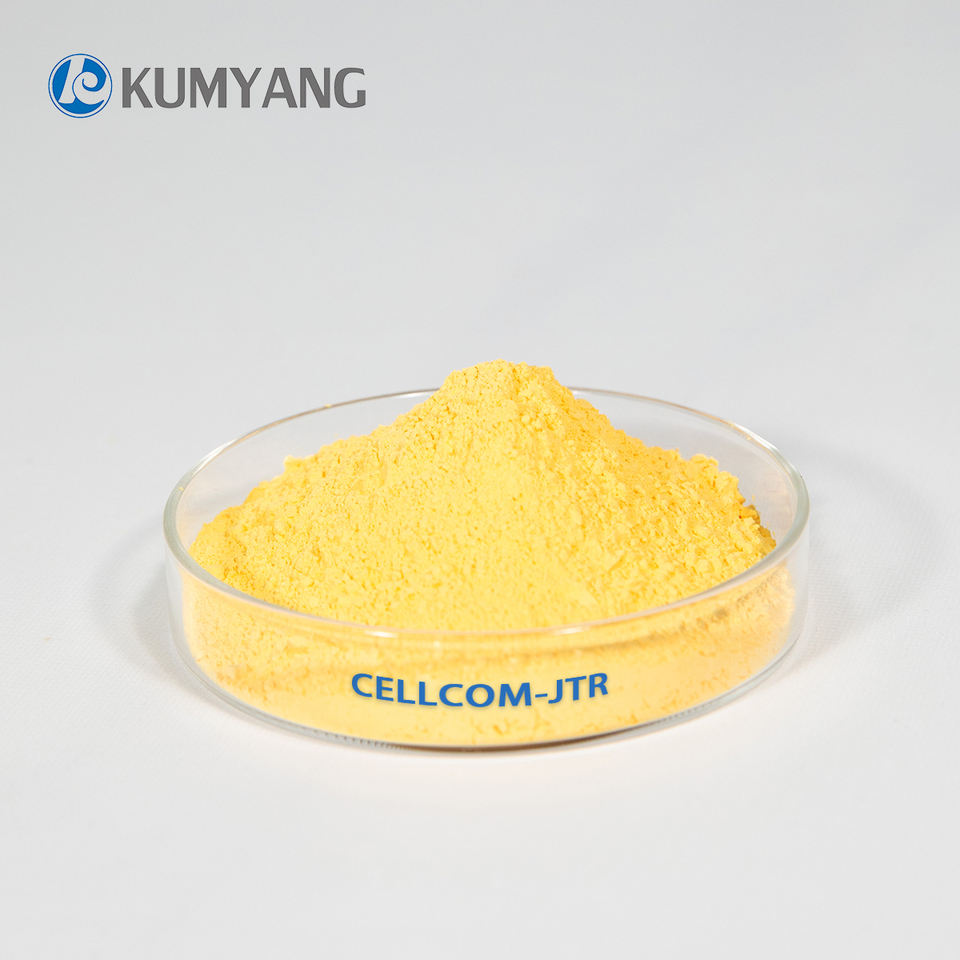 Agent de gonflage Kumyang Cellcom série JTR, poudre fine jaune, norme mondiale pour le moussage des semelles intérieures, semelles intermédiaires et semelles extérieures en EVA