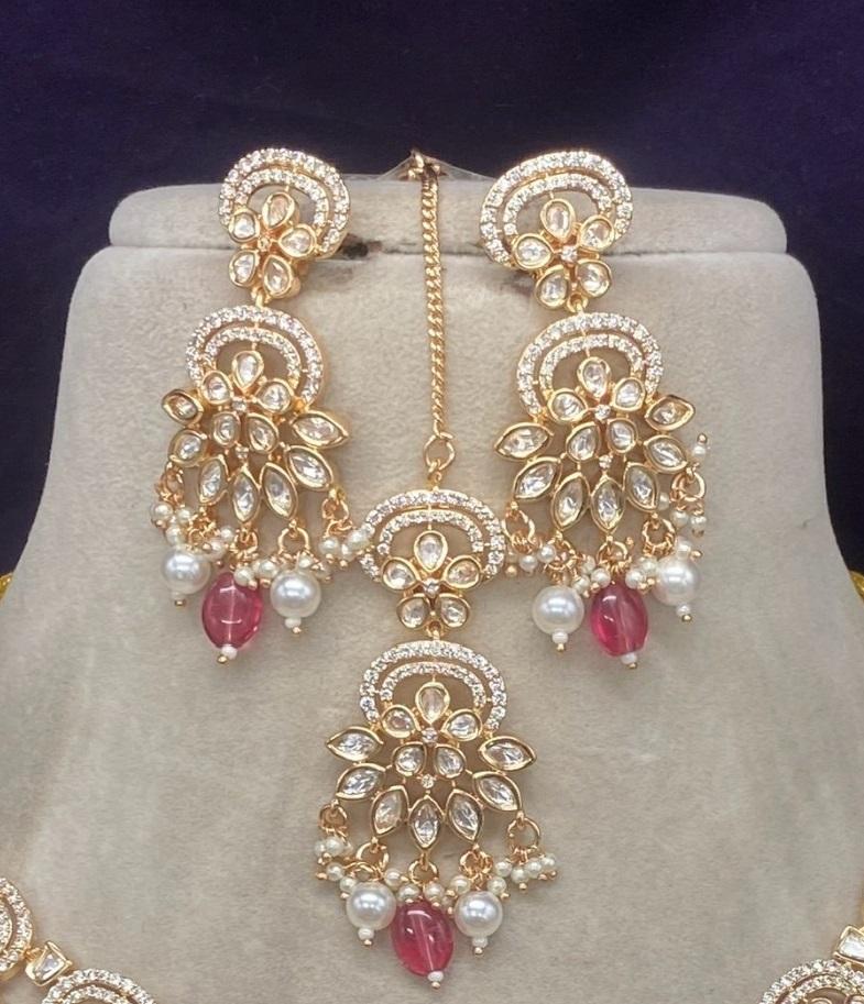 Kundan Bridal Jewelry Set Brass Necklace & Earrings with Sparkling American Diamonds for Weddings
