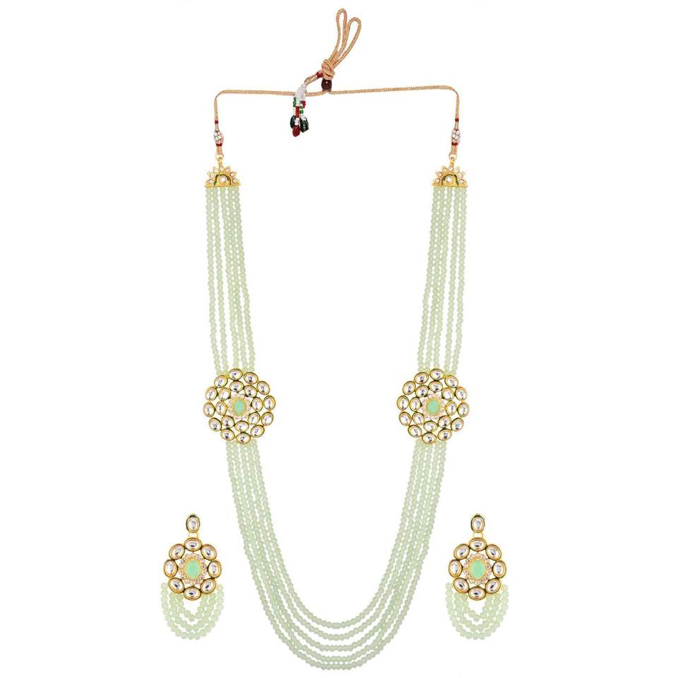 Design:Indian faux pearl beaded strand necklace earrings bridal jewelry set