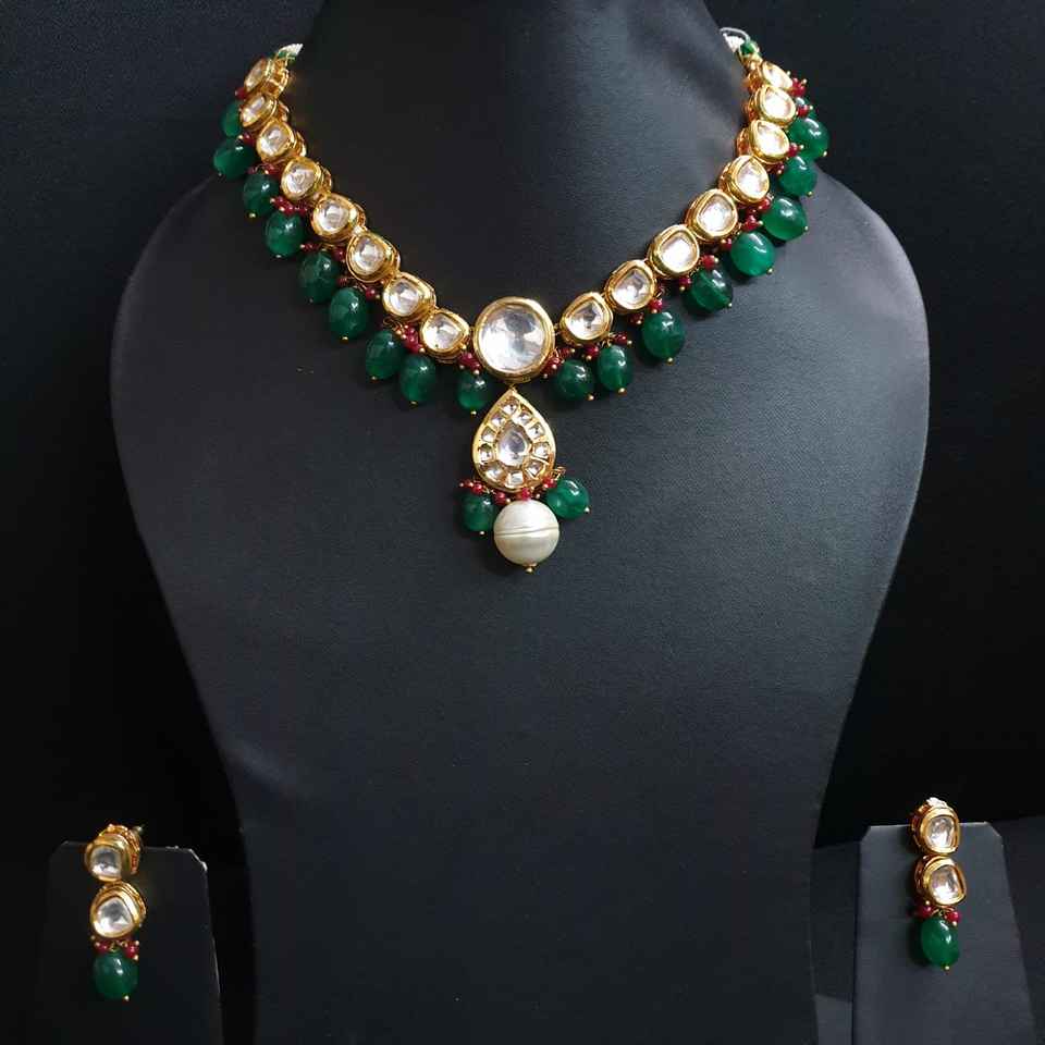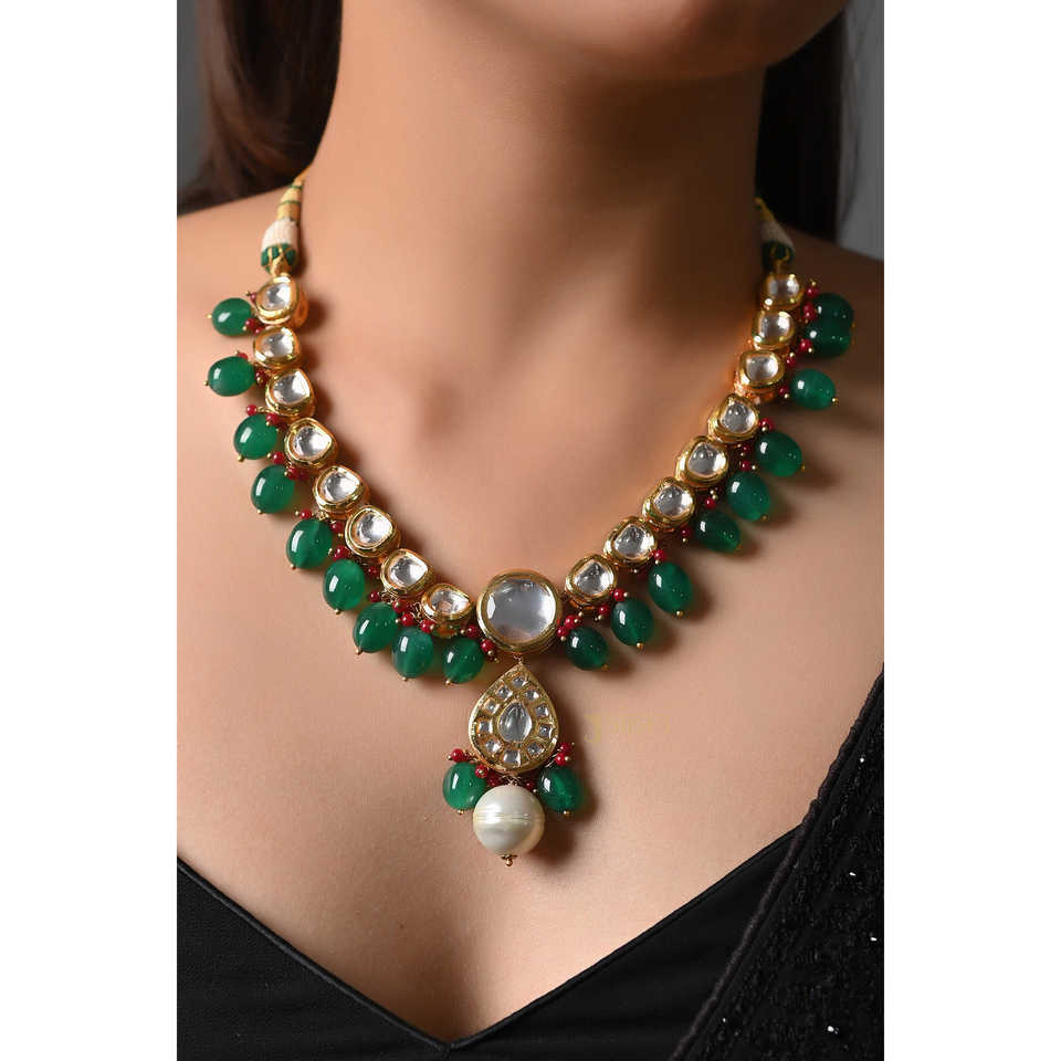 Collier Kundan avec perles de pierre de couleur émeraude plaqué or ensemble de bijoux fins avec cuivre diamant perle Zircon pour cadeau