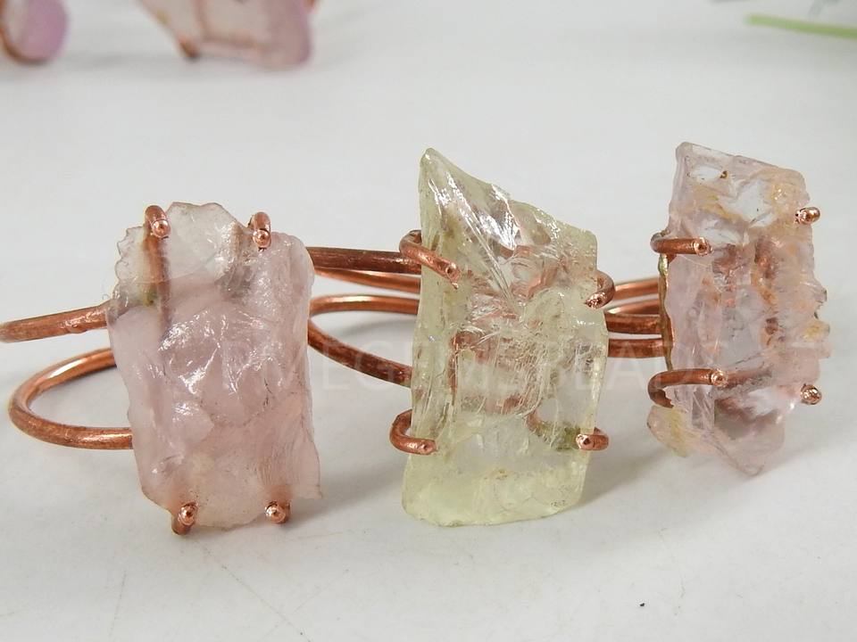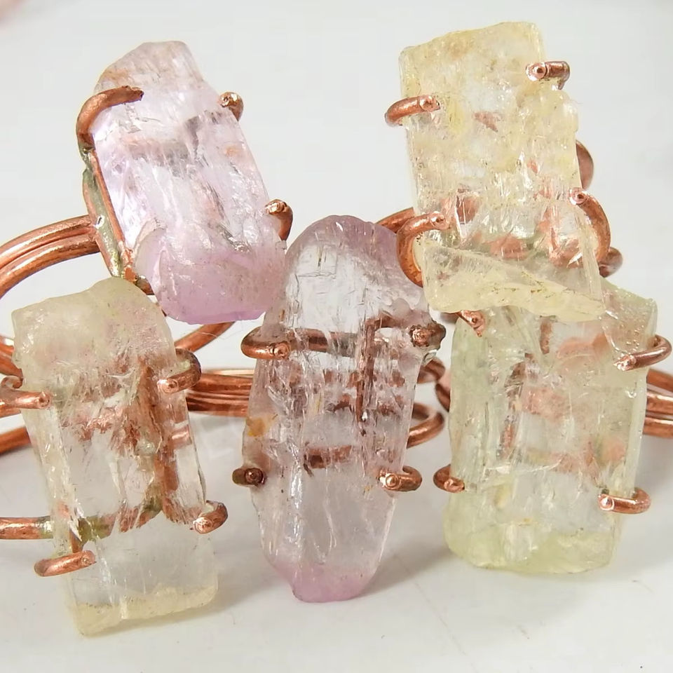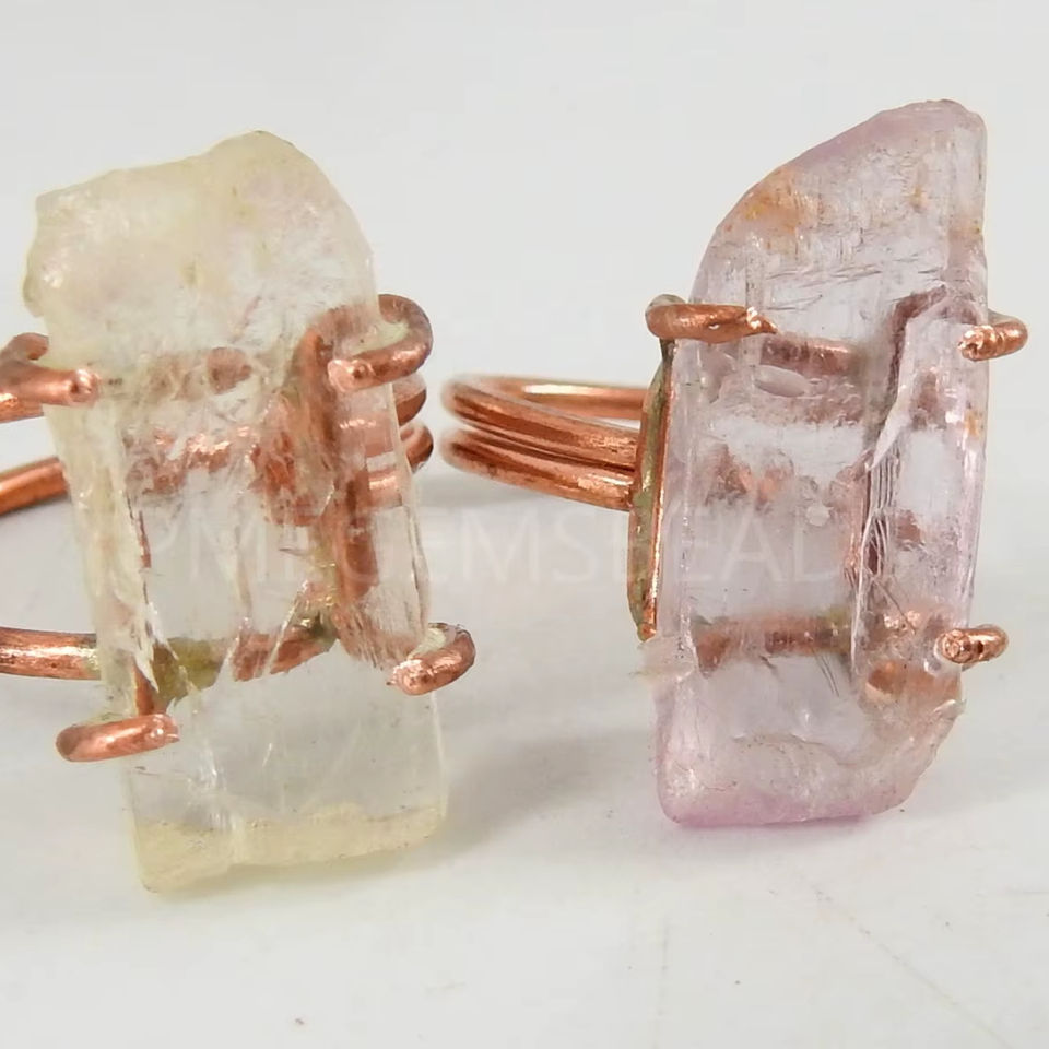 Kunzite naturel poli fil de cuivre brut emballage anneau de pierres précieuses pierre brute en vrac cadeau bijoux