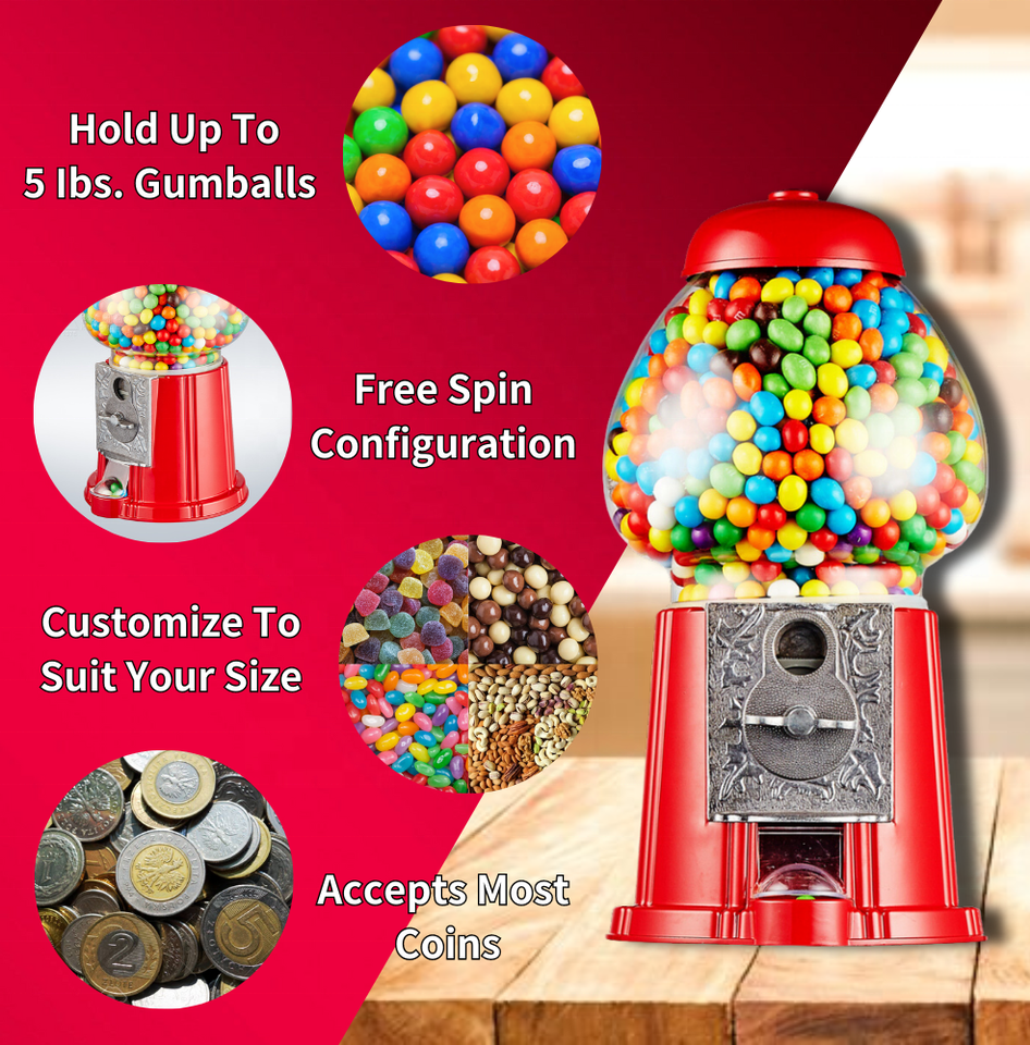 Name:15" Red Old Fashioned Vintage Candy vending Gumball Machine