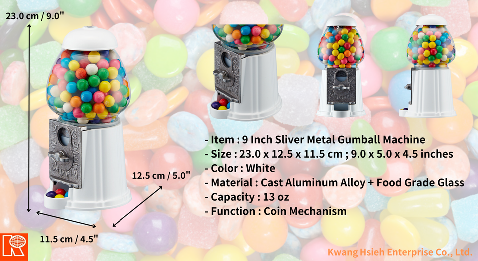 Kwang Hsieh 9 "prix usine blanc Globe Skittles distributeur de bonbons Machine jouet pour enfants