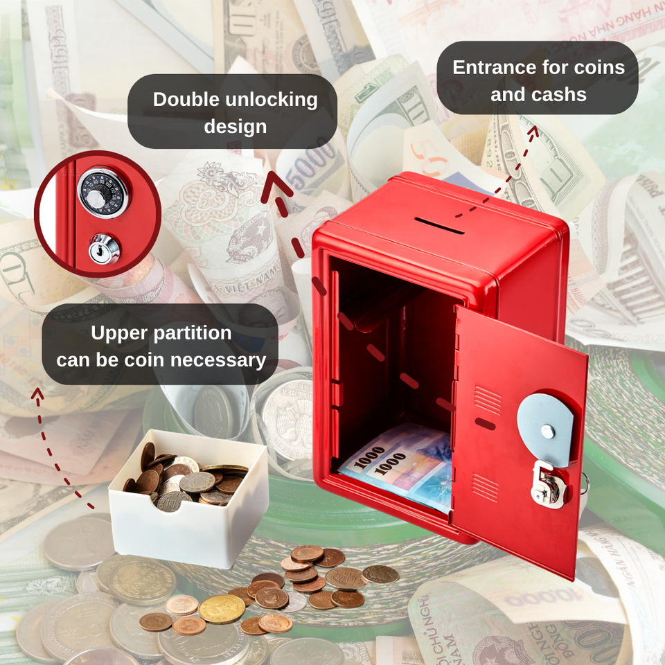 Kwang Hsieh Iron Red Custom Logo Low Lead Metal Piggy Bank Cash Coin Gift
