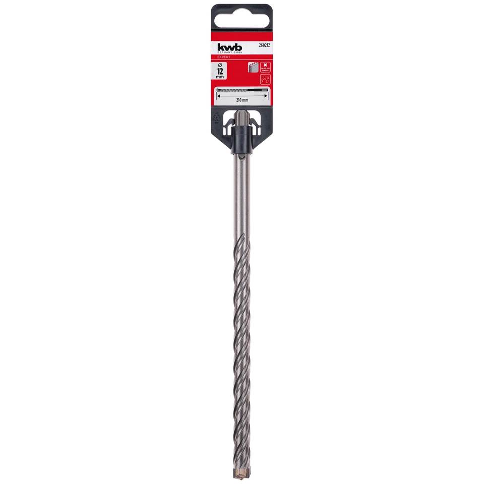 Mèche de perceuse à percussion SDS Plus compatible Kwb 12x210mm pour béton armé HB4X 260212 pour travaux de maçonnerie et de béton