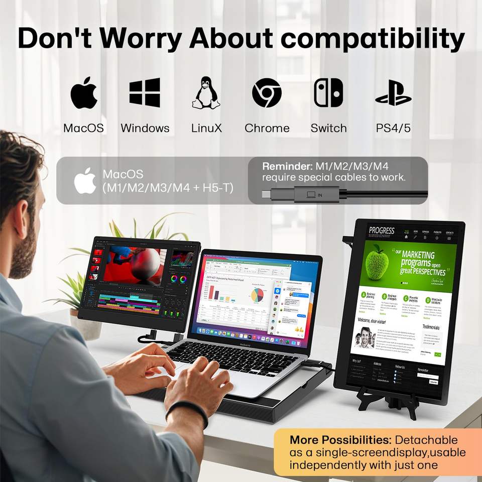 Écran Externe Multiple Kwumsy pour Mac/Wins/Chrome 14" 1920x1080 avec Support, Moniteur Supplémentaire pour Ordinateur Portable