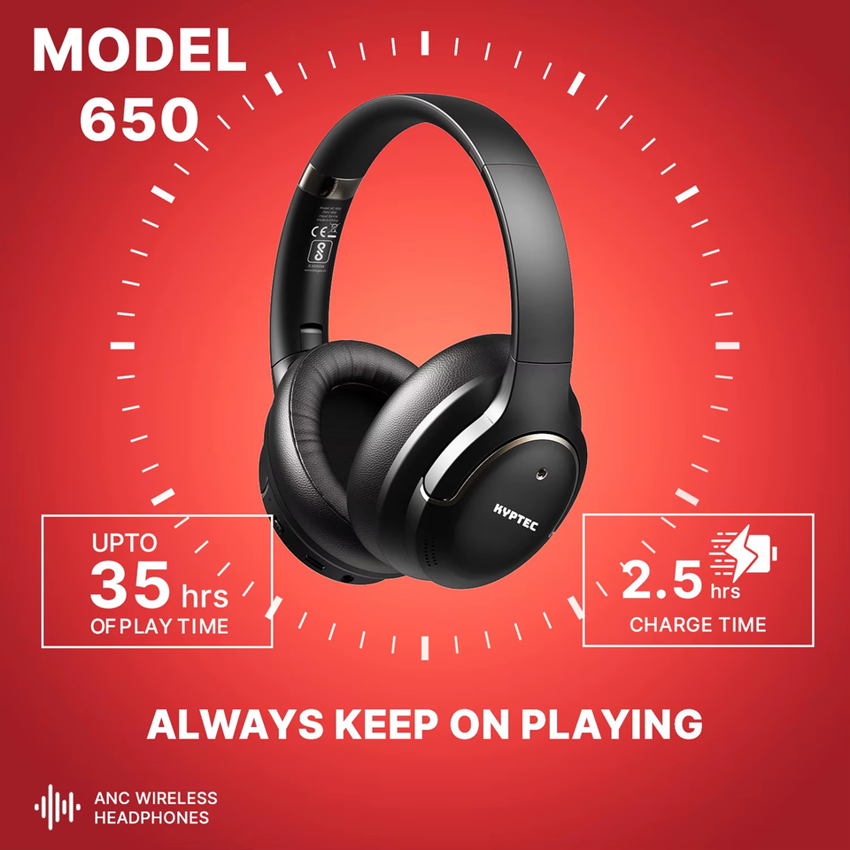 Kyptec 650 ANC Wireless Headphones Immersive Audio Experience with Soft Cushions and Long Wear Comfort