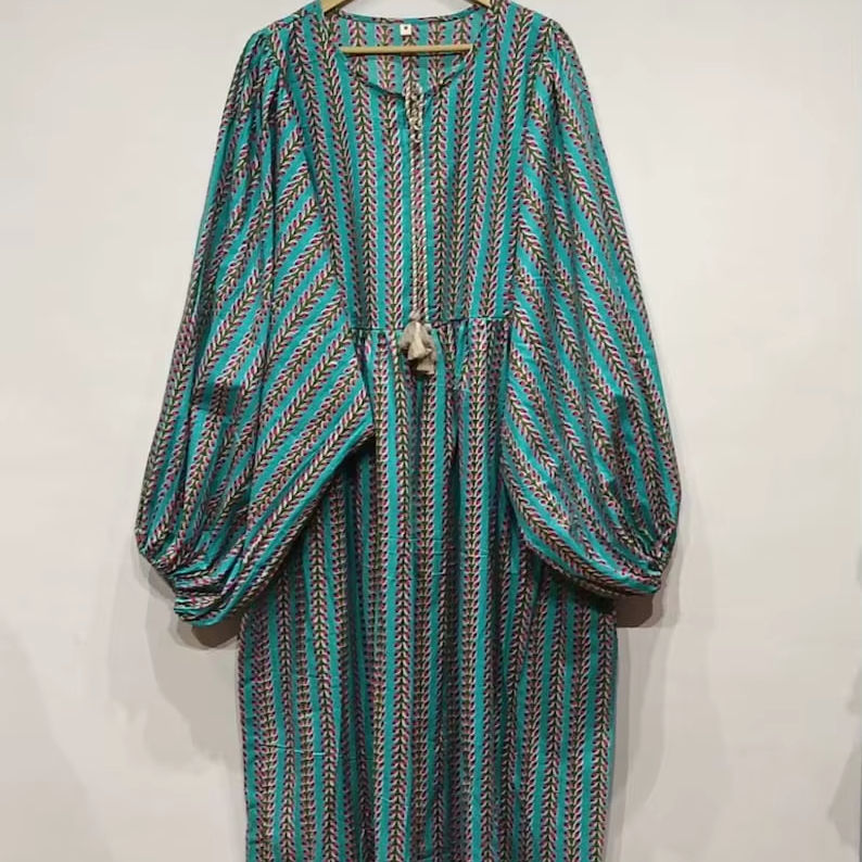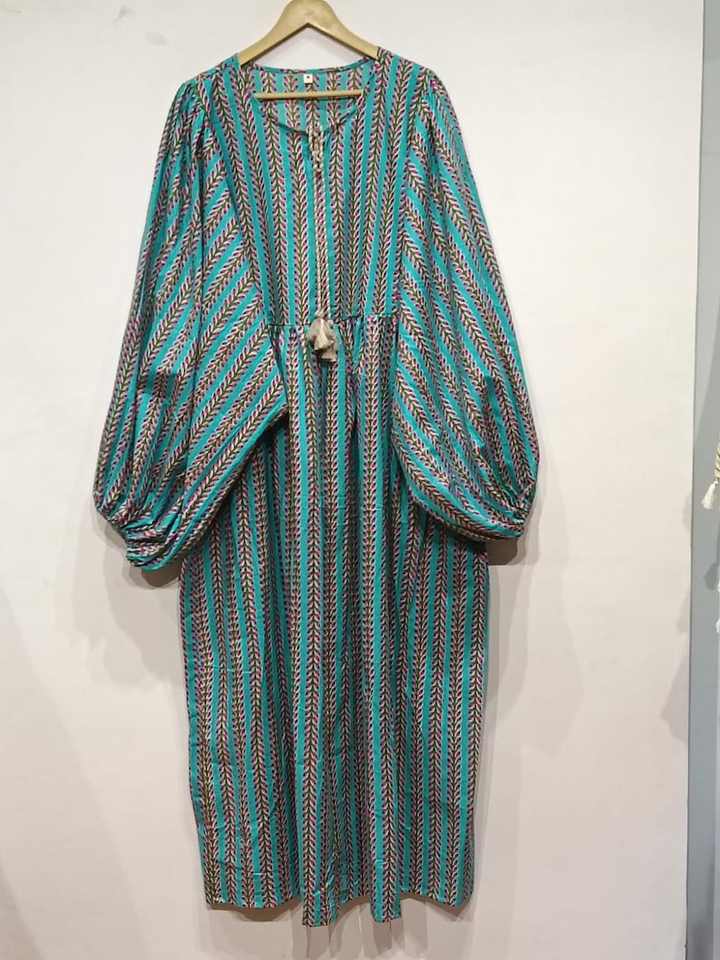 Robe midi en coton imprimé à la main Kyra, robe bohème d'été et de printemps