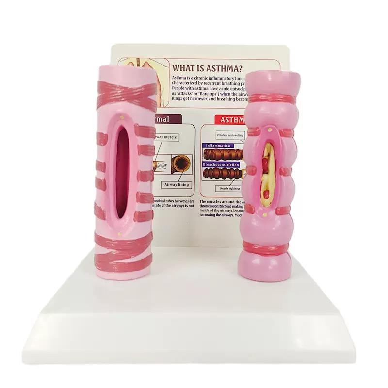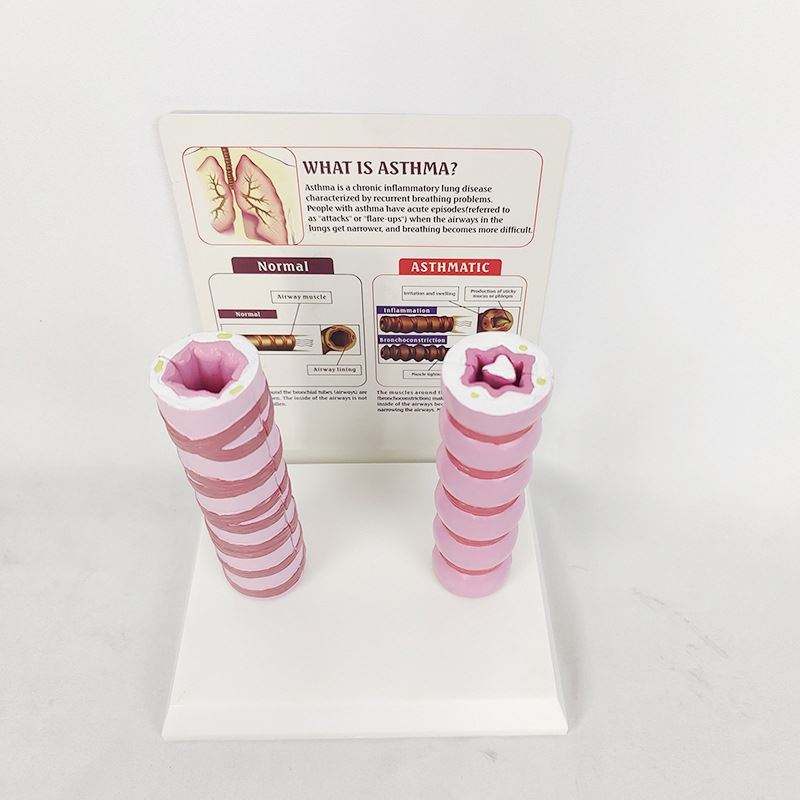 Modèle d'asthme KyrenMed : Comparaison entre bronches normales et pathologiques avec explications