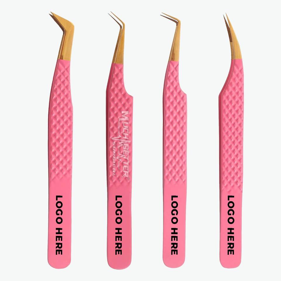 Ensemble de pinces à cils en acier inoxydable pour extension de cils en rose Marque privée personnalisée L Boot Fiber Tip Volume