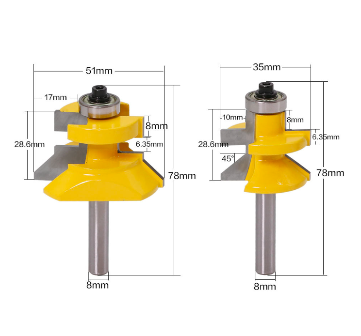 L-N115 2pc 1/2 "8mm tige V rainure et jeu d'embouts de routeur à langue assortie avec roulements à billes Premium coupe-bois