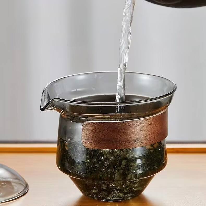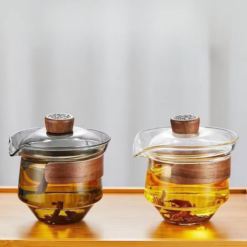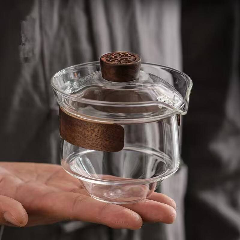 L Portable Kung Fu Tea Ceremony 250ml verre borosilicaté gris clair avec couvercle filtrant résistant à la chaleur poignée en bois tasse à thé