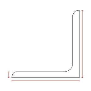 Coupe de profil en L, angles coupés de 20x20mm à 250x250mm.