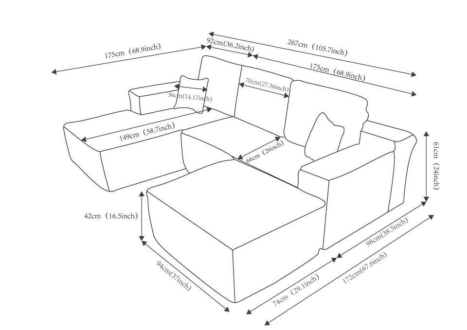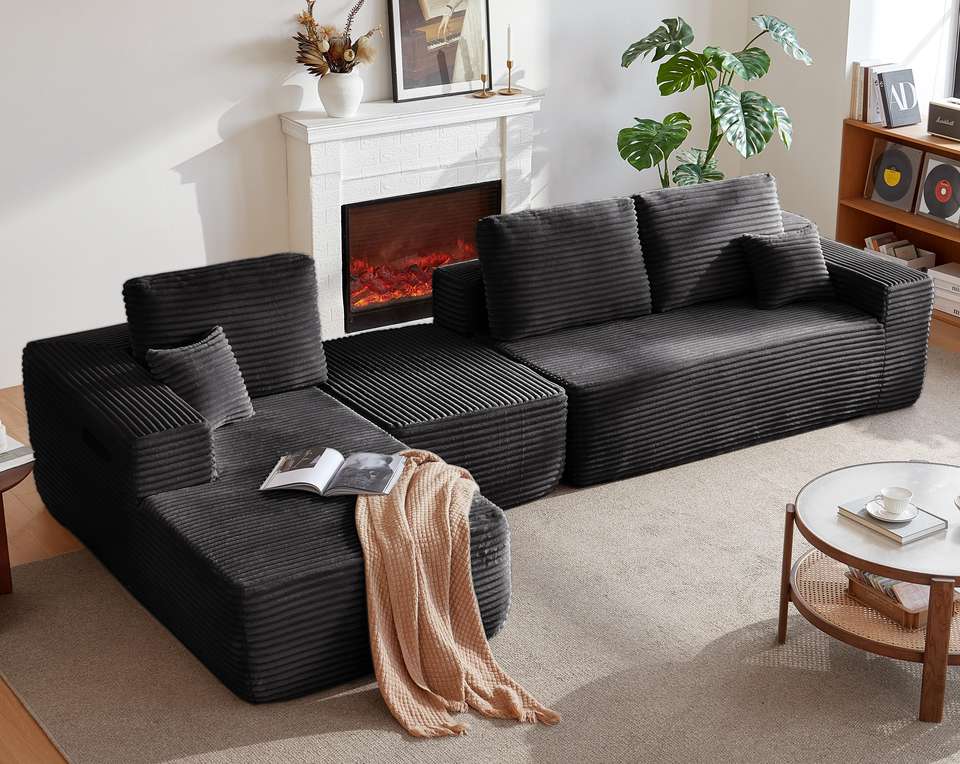 Canapé en forme de L compressé, canapé convertible moderne en velours côtelé, meuble de rangement sectionnel pour la maison, canapé pliable compressé
