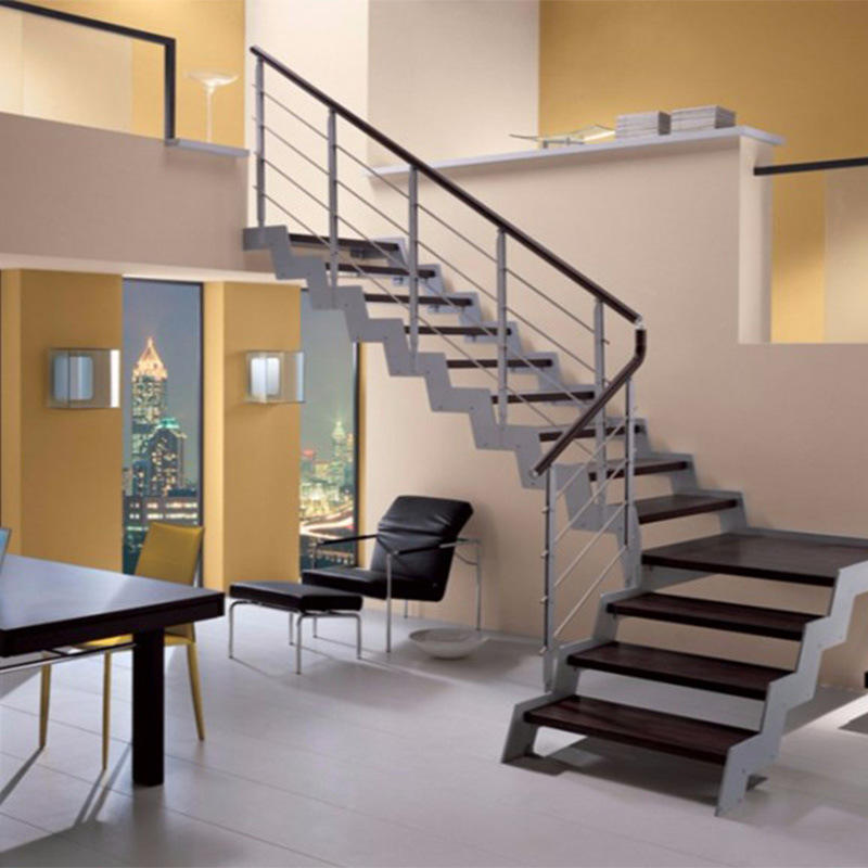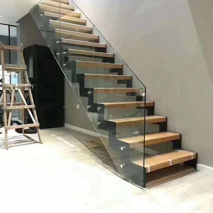 Nom du produit:Escalier intérieur escalier avec bois et balustrade en verre