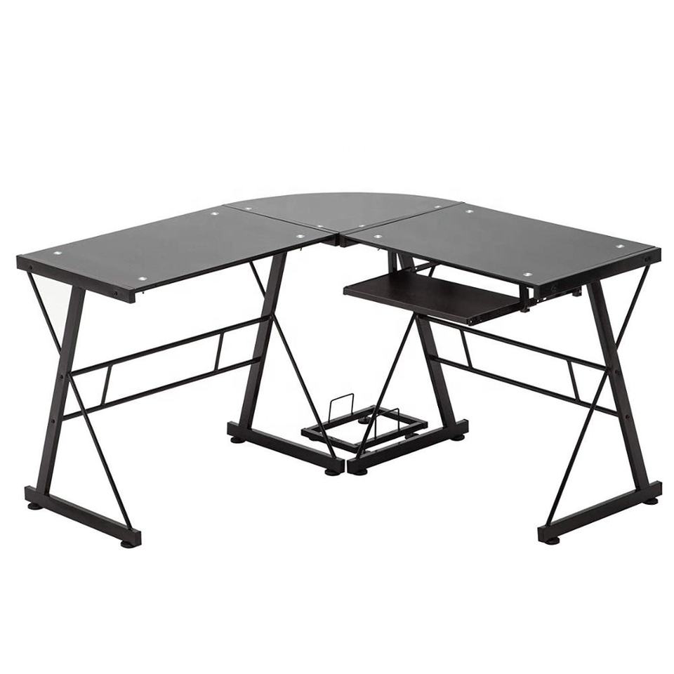 Bureau d'ordinateur en verre trempé en forme de LNom du produit