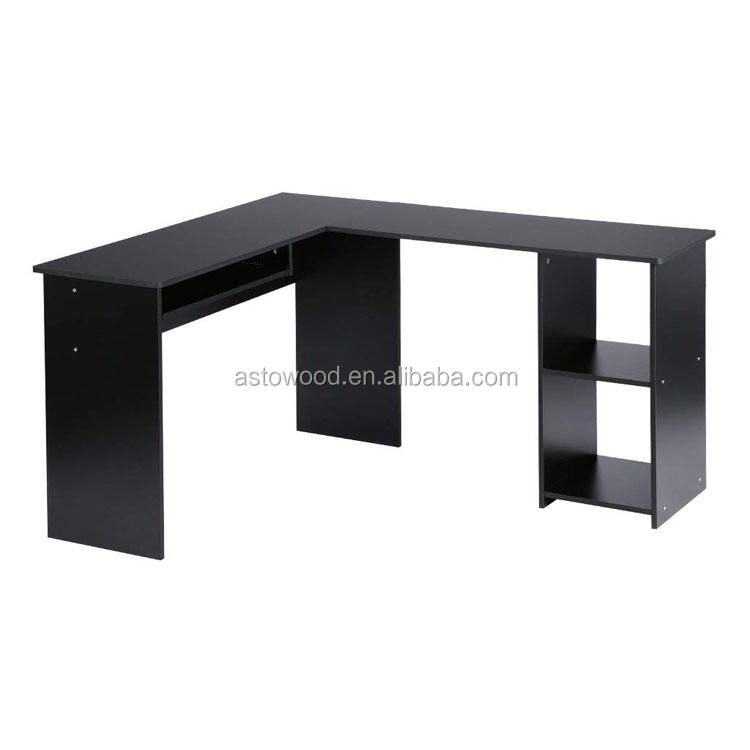 Bureau d'angle pour ordinateur en forme de L, poste de travail moderne pour la maison ou le bureau, avec plateau coulissant silencieux pour clavier et 2 étagères