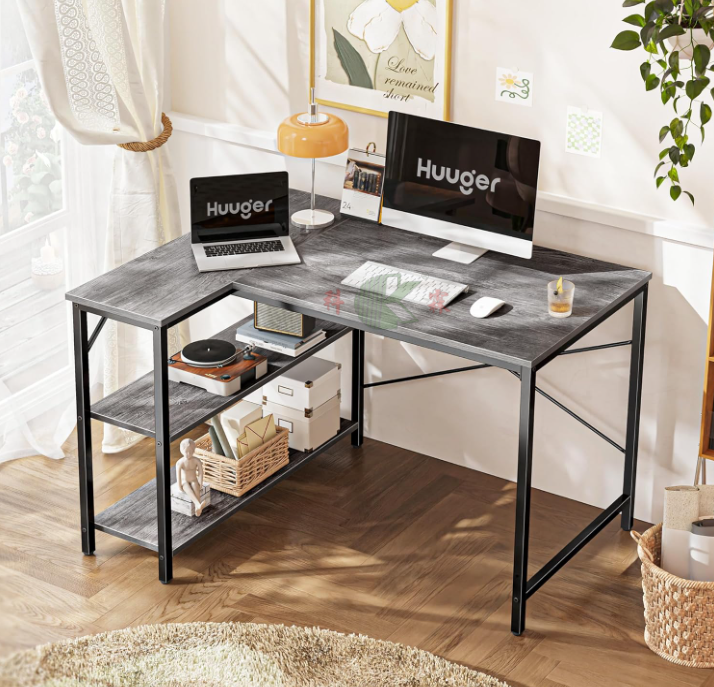 Bureau d'ordinateur en forme de L, bureau de 39 pouces, structure en métal, gris, pour bureau à domicile, jeux, coin d'écriture et d'étude