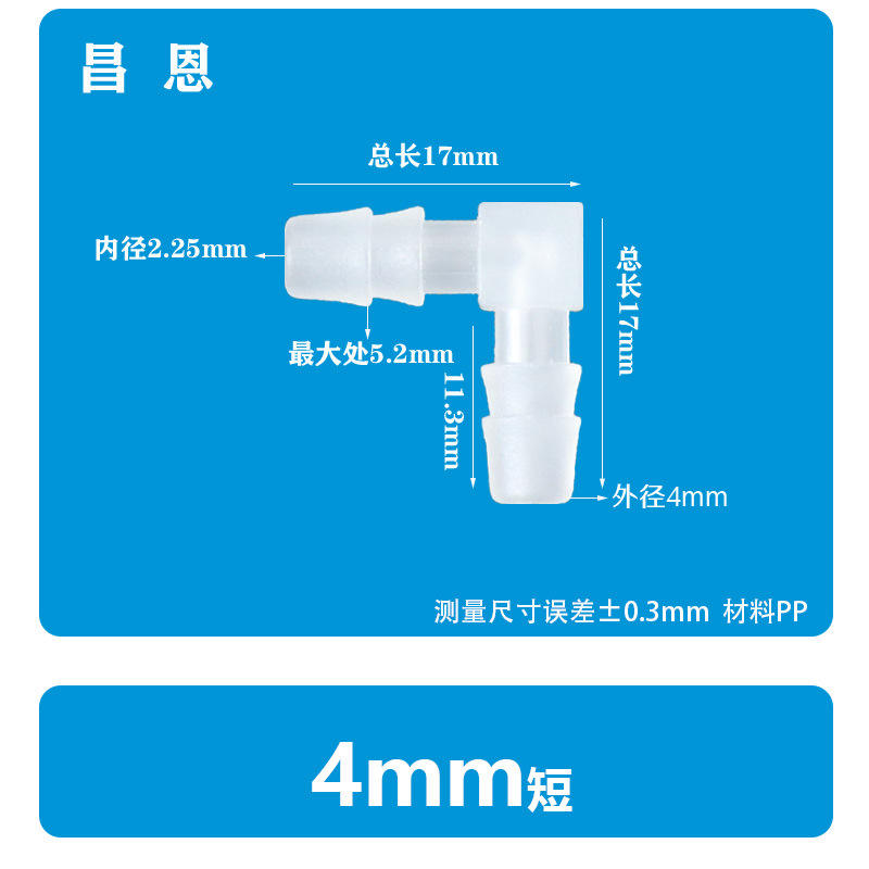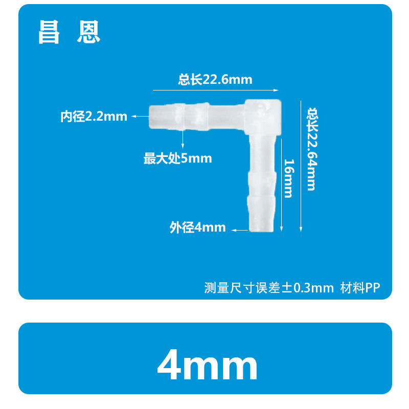 Connecteur de tuyau d'eau en plastique en forme de L, coude à 90 degrés, bec en PP en forme de pagode, adaptateurs de tuyau de 5/32 pouces 4 mm